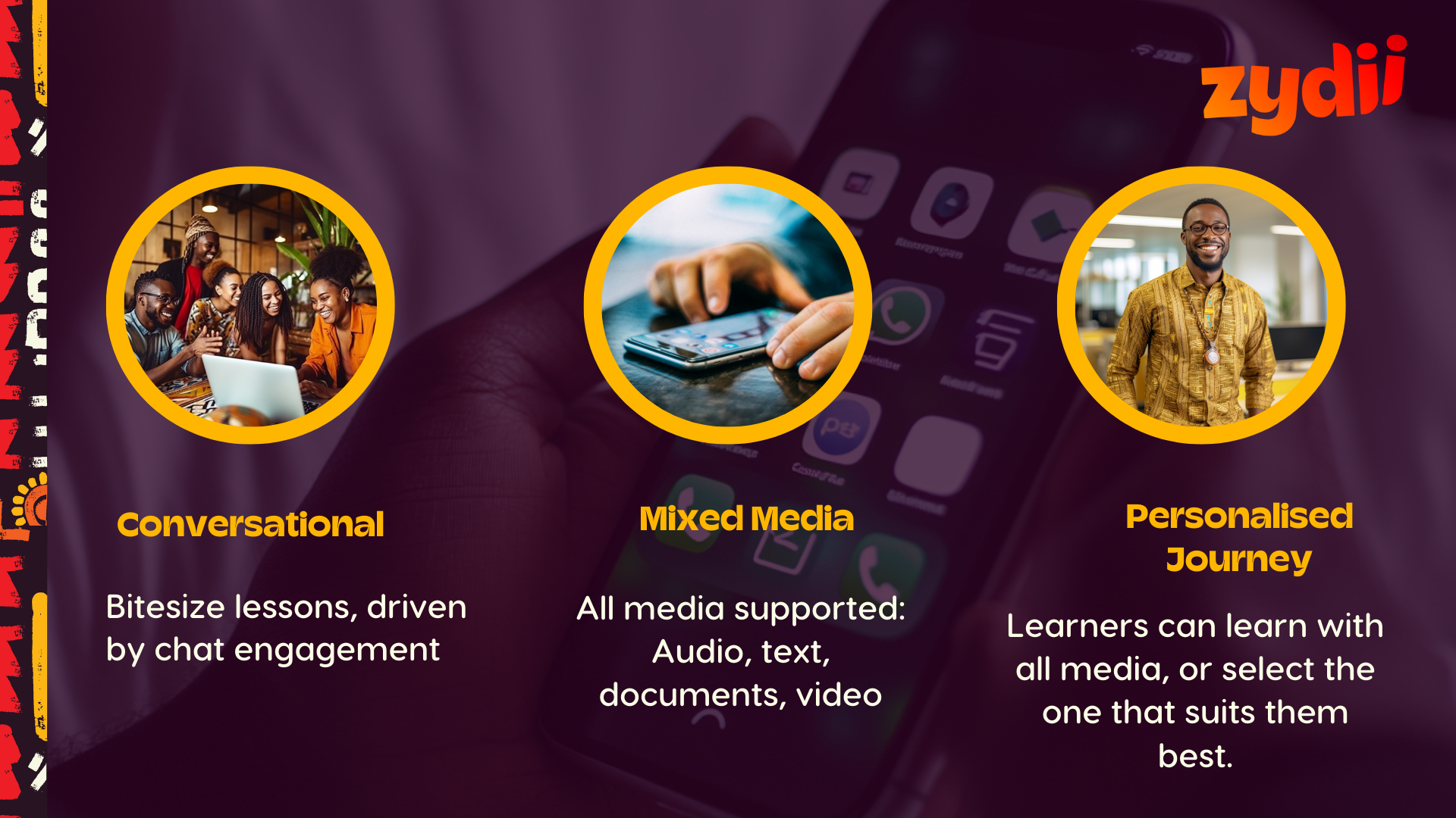 - No Sign-In Required: Forget about creating new accounts or managing new passwords. With Zydii, training is as easy as opening WhatsApp.